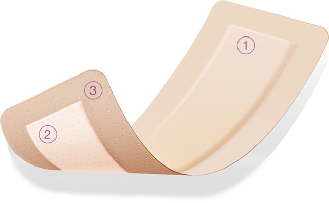 - 創傷接触面 <シリコーン> やさしく安全に貼りつきます。はがすときにもやさしい粘着剤です。