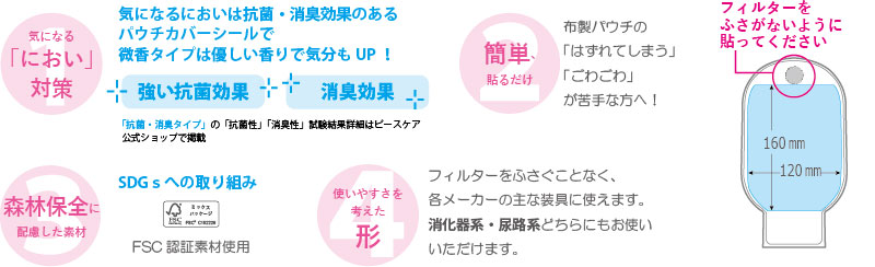 ●パウチカバーシール 1セット:防水 抗菌・消臭 微香3種1枚ずつ