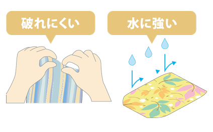 強くてしなやか、そして耐水性に優れたユポ素材を採用しています。